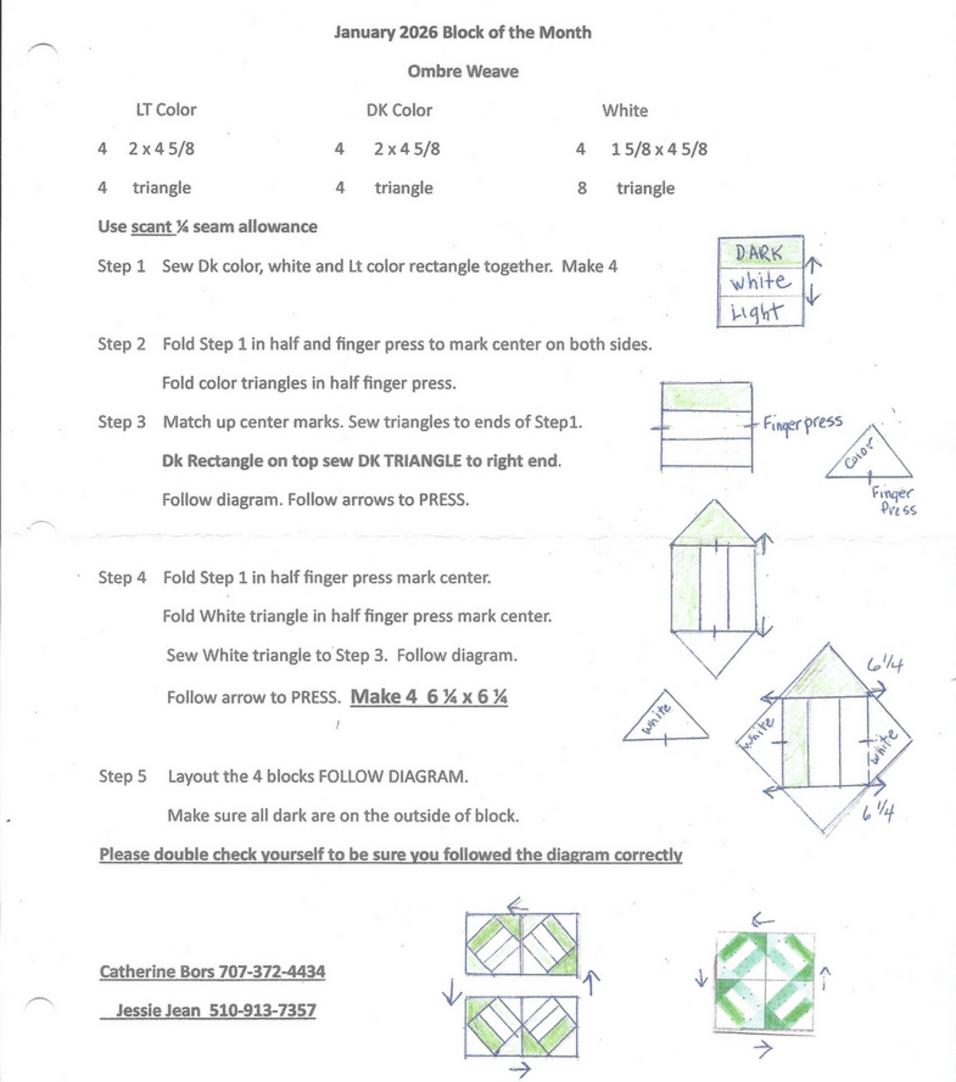 Instructions for making each month's block will be printed in the Guild's monthly newsletter. These blocks are posted for your use after they have been made for the Guild's Community Service.